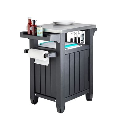 The keter unity xl outdoor prep and utility cart is a super useful tool to make outdoor cooking a breeze! Keter unity xl is a bestseller that is available in dark grey and espresso brown colors. Two stainless steel side bars can function as paper towel holder and hook holder. Includes two side bars for paper towel or hook holder with 4 hook hangers, spice rack and bottle opener. Keter pacific cool bar outdoor patio furniture and hot tub side table with 7.5 gallon beer and wine cooler ideal size: 78 total gal of storage capacity: Be the first to review this product. Includes two side bars for paper towel or hook holder with 4 hook hangers, spice rack and bottle opener. 24 for open storage and some outdoor grill prep tables feature a cabinet with interior storage that can be locked to secure your belongings. Get your patio in shape for warm weather with a selection of outdoor furniture. Perfect solution for my patio storage and grill prep needs. Target/patio & garden/patio furniture/patio bars & carts. 201 grade stainless steel upper surface for preparing and serving while being easy to clean.